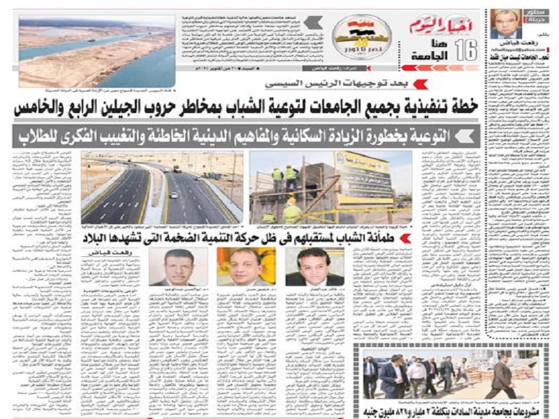 خطة تنفيذية بجميع الجامعات لتوعية الشباب بمخاطر حروب الجيلين الرابع والخامس (التوعية بخطورة الزيادة السكانية والمفاهيم الدينية الخاطئة والتغييب الفكرى للطلاب) وطمأنه الشباب لمستقبلهم فى ظل حركة التنمية الضخمة التى تشهدها البلاد