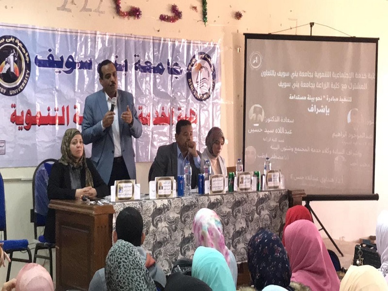 تحت رعايه معالى الاستاذ الدكتور /منصور حسن رئيس جامعه بني سويف وإشراف السيد الاستاذ الدكتور/سامح المراغي نائب رئيس الجامعة لشئون خدمة المجتمع وتنميه البيئه