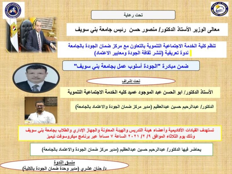 Präsident der Universität Beni Suef eröffnet die zweite wissenschaftliche Jahreskonferenz der Fakultät für Entwicklungssoziale Arbeit