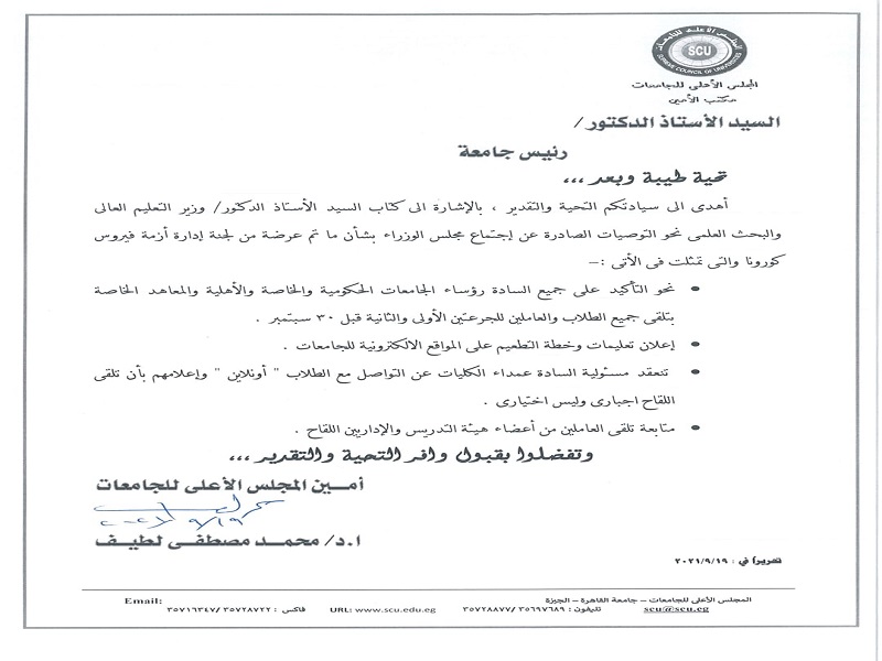 Beschluss des Obersten Rates der Universitäten über die Notwendigkeit einer Impfung gegen das Corona-Virus