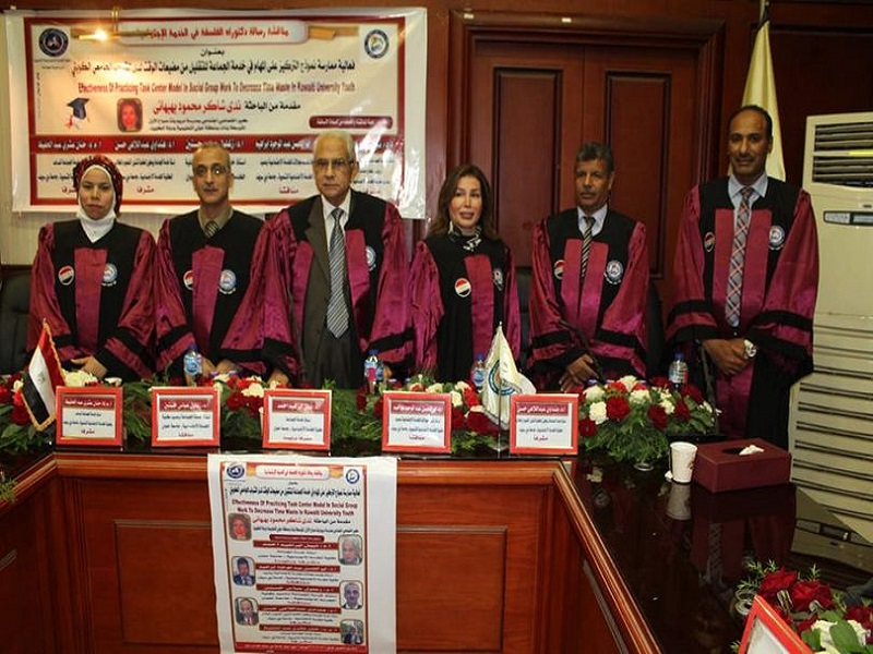 Diskussion der ersten Dissertation für internationale Forschende an der Fakultät für Entwicklungssoziale Arbeit, Beni Suef University
