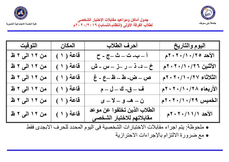 Tabelle mit Orten und Daten für persönliche Interviews für Studienanfänger (Zugehörigkeit und Teilnahme) 2019/2020