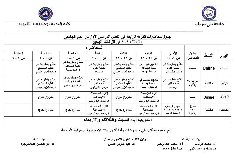 Vorlesungsplan der vierten Klasse für das erste Semester des akademischen Jahres 2020/2021 im Rahmen des Hybridsystems