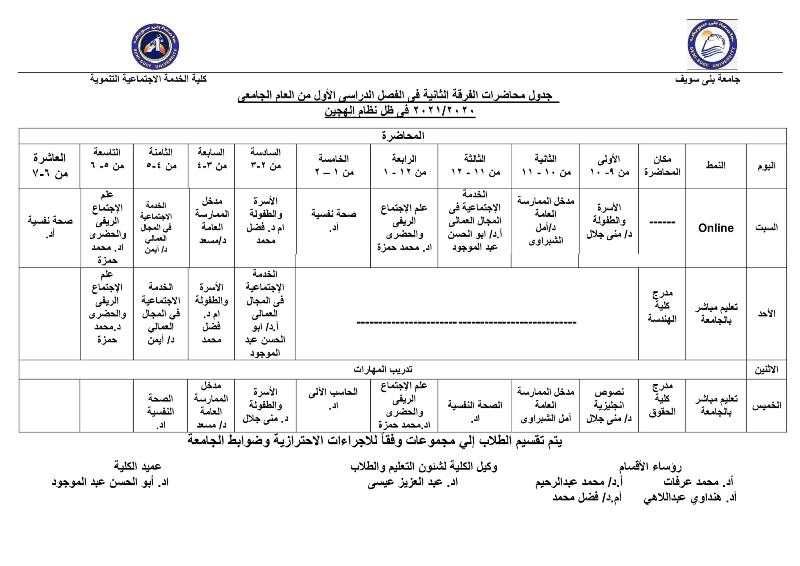 Zeitplan für Vorlesungen der zweiten Klasse für das erste Semester des akademischen Jahres 2020/2021 unter Hybridsystem
