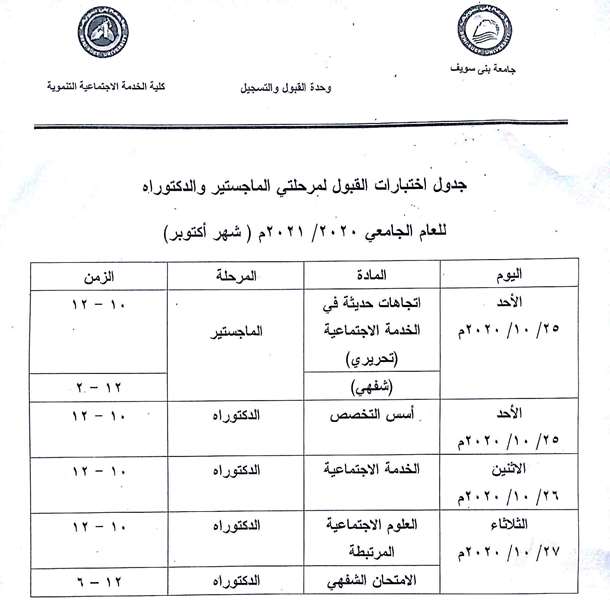 Zeitplan der Zulassungstests für Master- und Doktorandenstufen für das akademische Jahr 2020/2021 (Oktober)