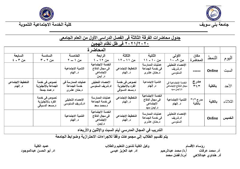 Vorlesungsplan der dritten Klasse für das erste Semester des akademischen Jahres 2020/2021 im Rahmen des Hybridsystems